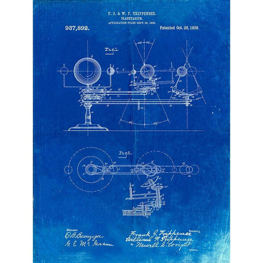 PP988-Faded Blueprint Planetarium 1909 Patent Poster Black Modern Wood Framed Art Print by Borders, Cole