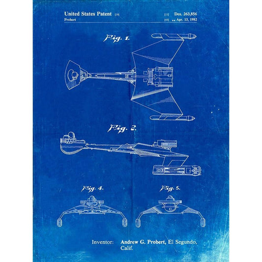PP1017-Faded Blueprint Rocket Ship Model Patent Poster Black Modern Wood Framed Art Print by Borders, Cole