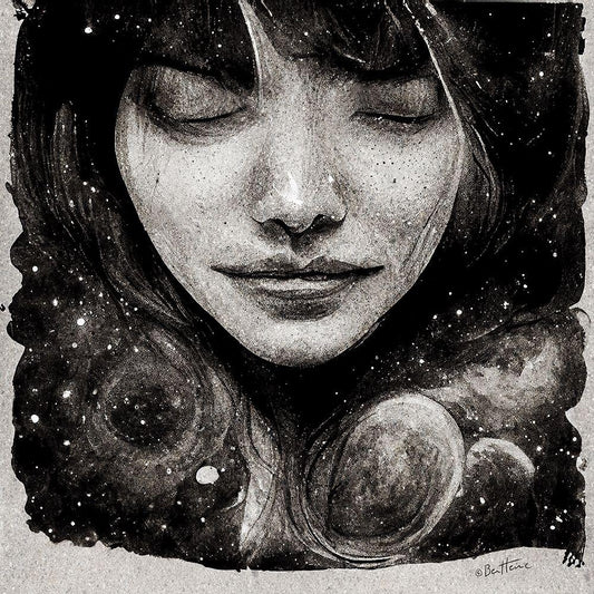 Astro Cruise 26 - Galaxy Face Black Modern Wood Framed Art Print by Heine, Ben