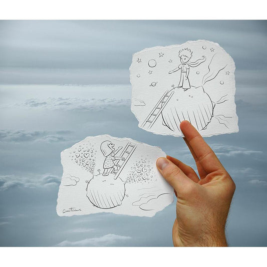 Astro Cruise 6 - True love means never abandoning someone Black Modern Wood Framed Art Print by Heine, Ben