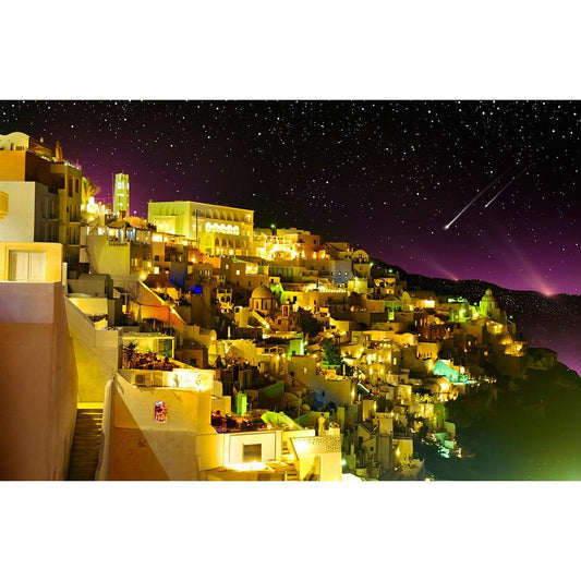 Fira By Night Black Modern Wood Framed Art Print by Heine, Ben