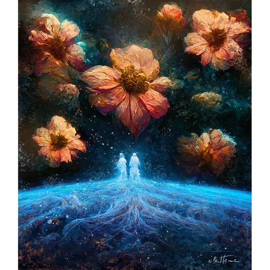 Astro Cruise 4 - Sending You a Flower From Space Black Modern Wood Framed Art Print by Heine, Ben