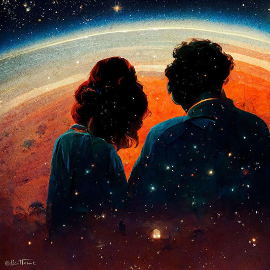 Astro Cruise 21 - The Two of Us in the Universe Black Modern Wood Framed Art Print by Heine, Ben