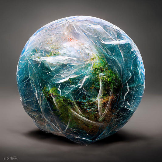 Astro Cruise 15 - Earth Wrapped in a Plastic Bag Black Modern Wood Framed Art Print by Heine, Ben