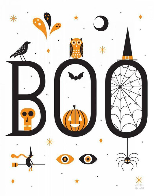 Halloween Fun White Modern Wood Framed Art Print with Double Matting by Mullan, Michael
