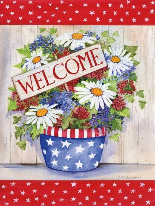 Patriotic Welcome White Modern Wood Framed Art Print with Double Matting by McKenna, Kathleen Parr