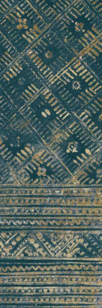 Indochina Batik II Teal and Gold White Modern Wood Framed Art Print with Double Matting by Wild Apple Portfolio