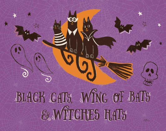 Spooktacular I Black Cats Purple White Modern Wood Framed Art Print with Double Matting by Penner, Janelle