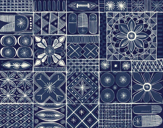 Adire VII Indigo White Modern Wood Framed Art Print with Double Matting by Lovell, Kathrine