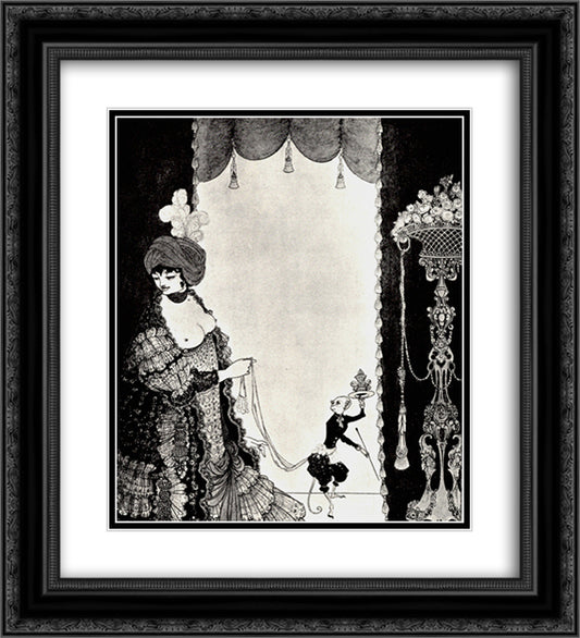 The Lady with the Monkey 20x22 Black Ornate Wood Framed Art Print Poster with Double Matting by Beardsley, Aubrey