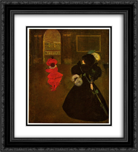 Masked Woman with a White Mouse 20x22 Black Ornate Wood Framed Art Print Poster with Double Matting by Beardsley, Aubrey