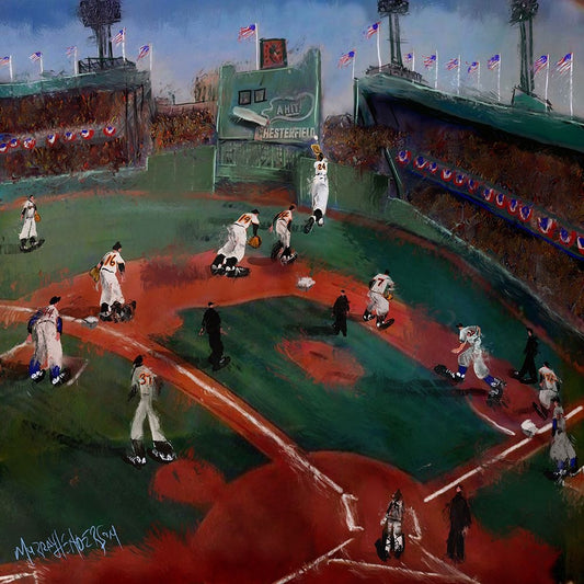 Metro Baseball White Modern Wood Framed Art Print with Double Matting by Vintage Apple Collection