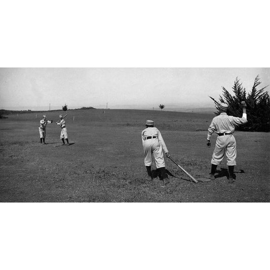 Trying to Catch Him Napping, Baseball Card Black Modern Wood Framed Art Print with Double Matting by American Tobacco Company