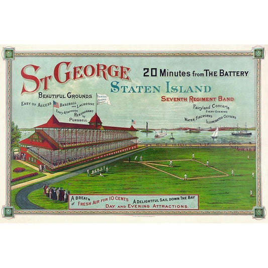 Baseball game being played at St. George Park White Modern Wood Framed Art Print by Unknown