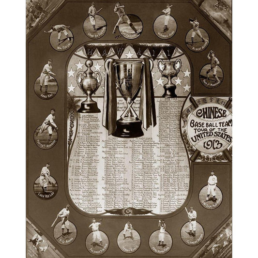 Chinese baseball team tour of the United States White Modern Wood Framed Art Print by Vintage Sports
