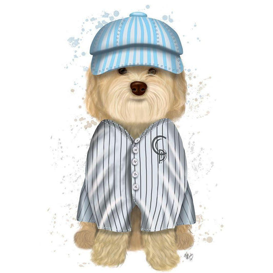 Cockerpoo Baseball White Modern Wood Framed Art Print by Fab Funky