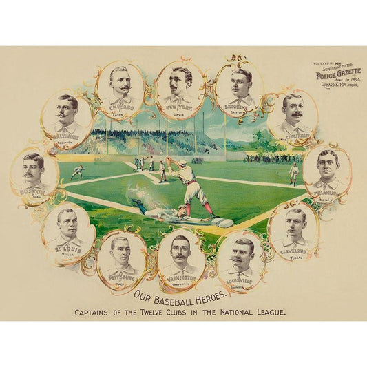 Our baseball heroes - captains of the twelve clubs in the National League Gold Ornate Wood Framed Art Print with Double Matting by Vintage Sports