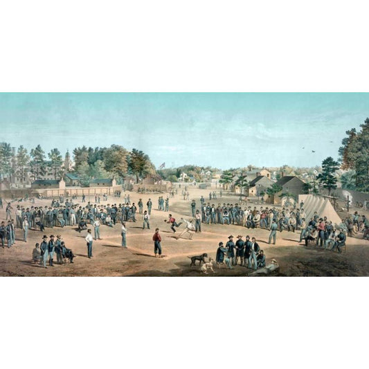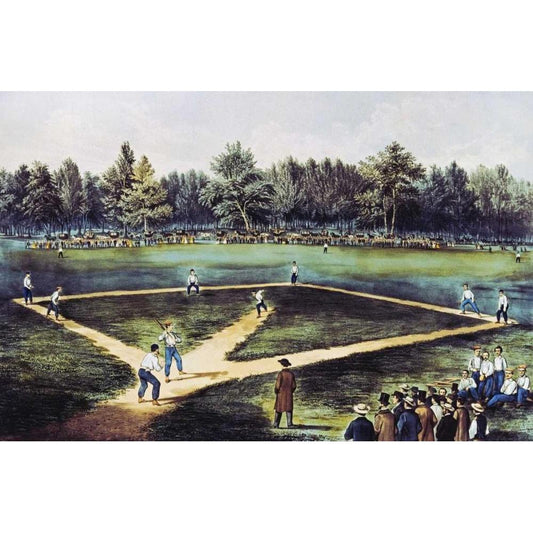 The American National Game of Baseball at The Elysian Fields Gold Ornate Wood Framed Art Print with Double Matting by Currier and Ives