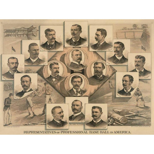 Representatives of professional baseball in America Gold Ornate Wood Framed Art Print with Double Matting by Vintage Sports