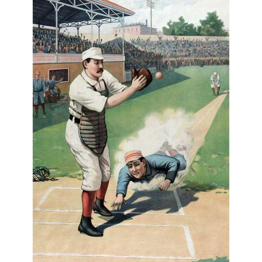 Baseball Play at the Plate Gold Ornate Wood Framed Art Print with Double Matting by Vintage Sports