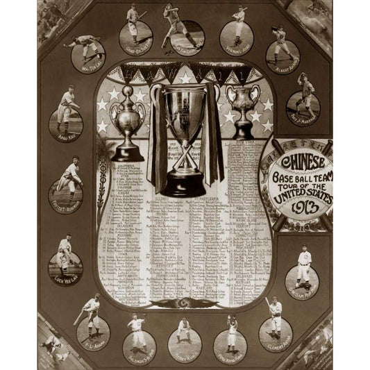 Chinese baseball team tour of the United States Gold Ornate Wood Framed Art Print with Double Matting by Vintage Sports
