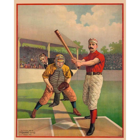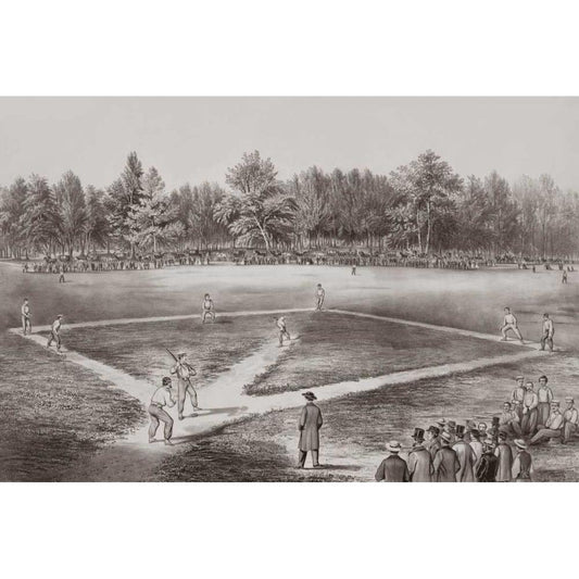American national game of base ball Black Modern Wood Framed Art Print by Vintage Sports