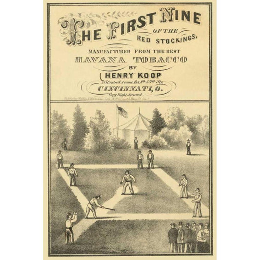 First nine of the Red Stockings Black Modern Wood Framed Art Print by Vintage Sports