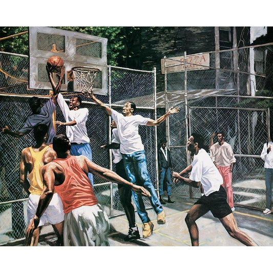 Basketball Pick Up Black Modern Wood Framed Art Print with Double Matting by Unknown