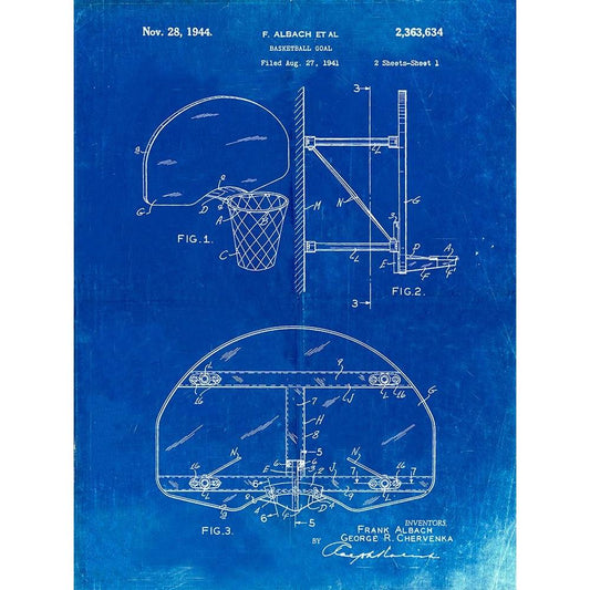 PP196- Vintage Parchment Albach Basketball Goal Patent Poster Black Modern Wood Framed Art Print with Double Matting by Borders, Cole