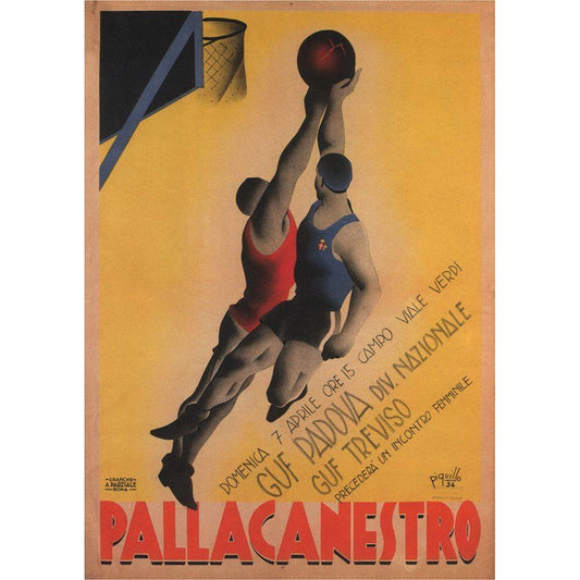 Basketball Pallacanestro Black Modern Wood Framed Art Print with Double Matting by Vintage Apple Collection