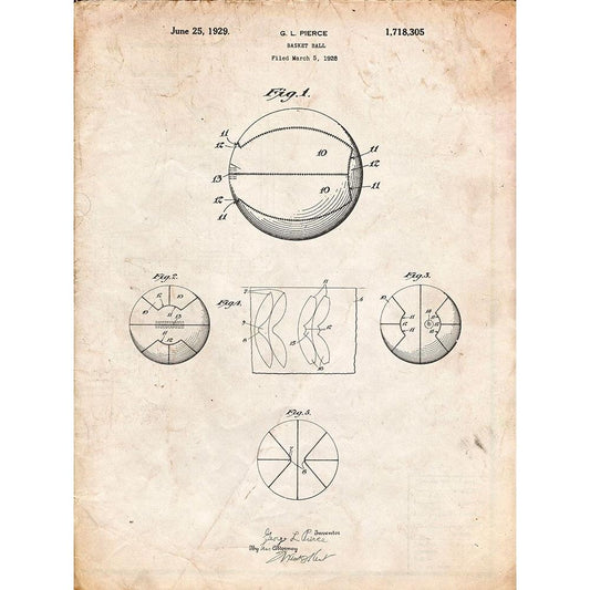 PP222-Vintage Parchment Basketball 1929 Game Ball Patent Poster Black Modern Wood Framed Art Print with Double Matting by Borders, Cole