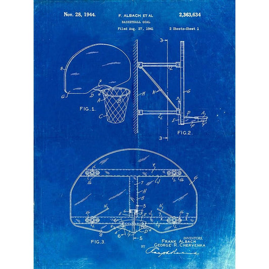 PP196- Faded Blueprint Albach Basketball Goal Patent Poster Black Modern Wood Framed Art Print with Double Matting by Borders, Cole