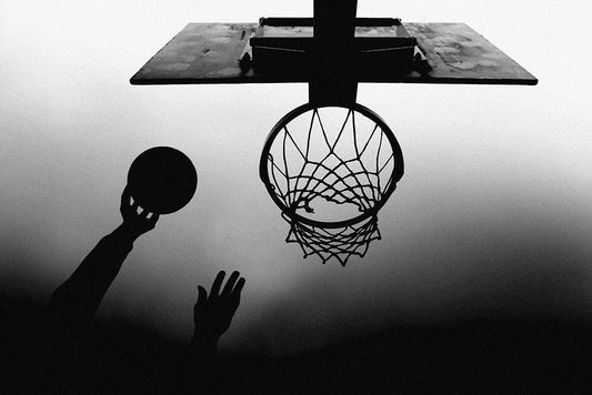 Basketball Home White Modern Wood Framed Art Print with Double Matting by Rae, Marla