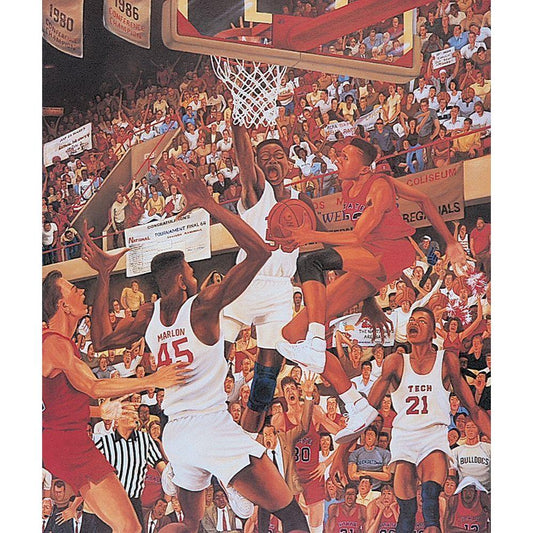 Basketball Dunk White Modern Wood Framed Art Print by Unknown