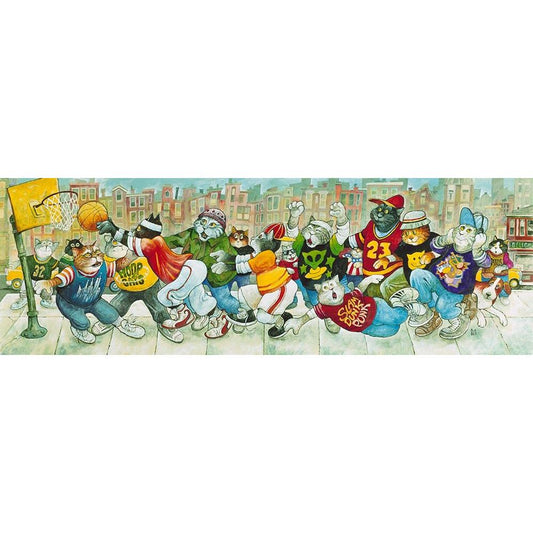 Hoop Cats White Modern Wood Framed Art Print by Bell, Bill
