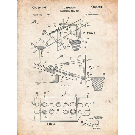 PP717-Vintage Parchment Basketball Goal Patent Poster White Modern Wood Framed Art Print by Borders, Cole