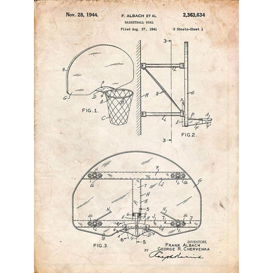 PP196- Vintage Parchment Albach Basketball Goal Patent Poster White Modern Wood Framed Art Print by Borders, Cole
