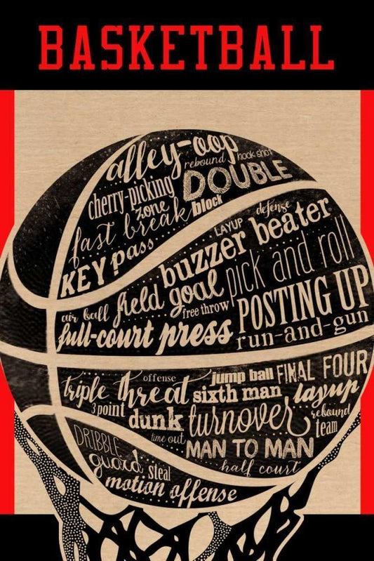 Basketball Terms White Modern Wood Framed Art Print with Double Matting by Longfellow Designs