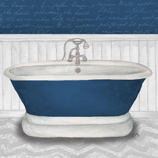 Deep Blue Nautical Bath I White Modern Wood Framed Art Print with Double Matting by Medley, Elizabeth