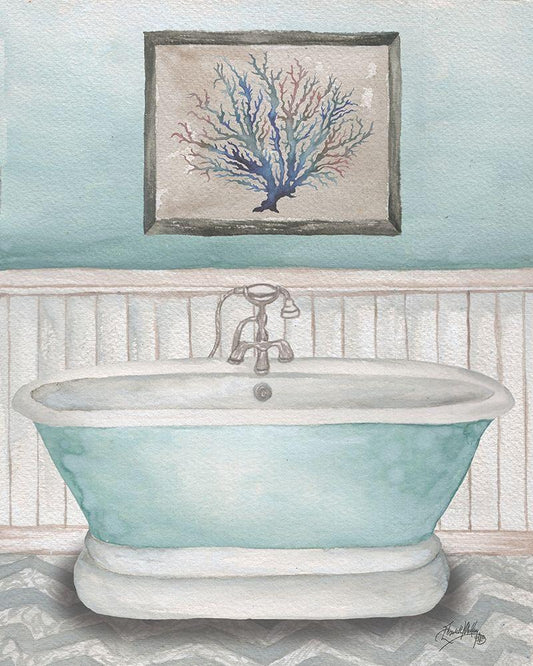 Nautical Bath I White Modern Wood Framed Art Print with Double Matting by Medley, Elizabeth