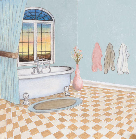 Pastel Bath I White Modern Wood Framed Art Print with Double Matting by Medley, Elizabeth