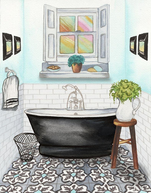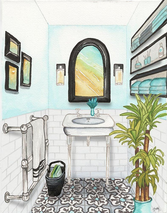 Boho Bath I White Modern Wood Framed Art Print with Double Matting by Medley, Elizabeth