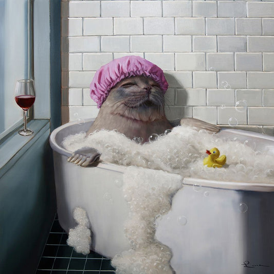 Bath Day White Modern Wood Framed Art Print with Double Matting by Heffernan, Lucia