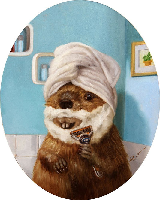 Scrubbing Bubbles Sloth White Modern Wood Framed Art Print with Double Matting by Lee, Nancy