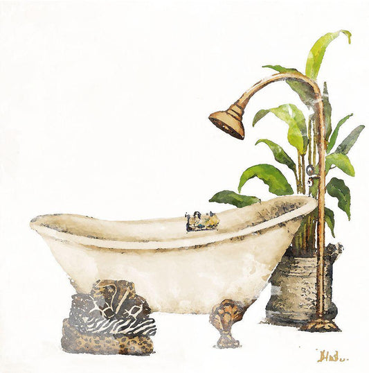 Golden Jungle Bath I White Modern Wood Framed Art Print with Double Matting by Hakimipour, Tiffany