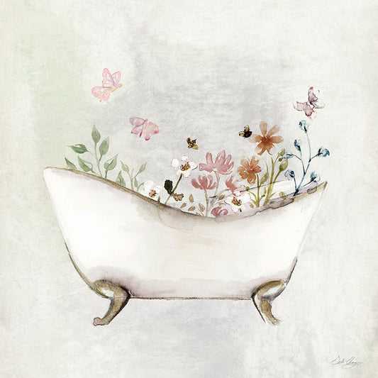 Charming Bath I White Modern Wood Framed Art Print with Double Matting by Tava Studios