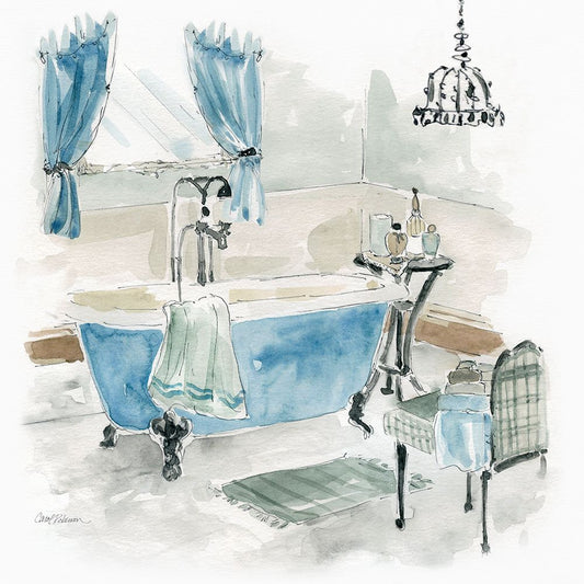 Fancy Cottage Bath I White Modern Wood Framed Art Print with Double Matting by Robinson, Carol
