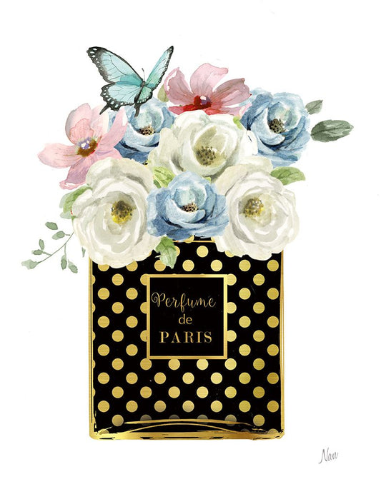 Polka Dot Floral Perfume White Modern Wood Framed Art Print with Double Matting by Nan