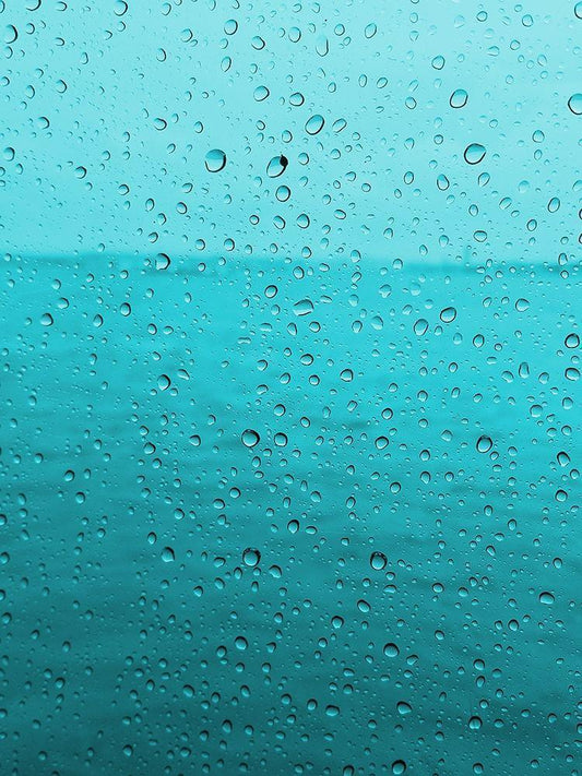 Teal Rain Drops White Modern Wood Framed Art Print with Double Matting by Lewis, Sheldon