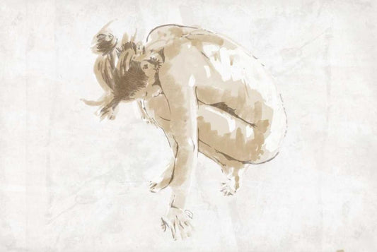 Nude Pose White Modern Wood Framed Art Print with Double Matting by OnRei